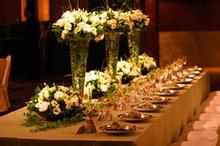 鮮花是婚禮上最引人注目的道具之一,無論是捧花還是桌花,都不能隨便扎起來就用,要考慮到花朵種類之間的色彩與形狀的搭配和諧關系,最好事先與花藝師溝通確定一個主色。造型上也以小巧為佳,太大的造型會讓人感到羅嗦。